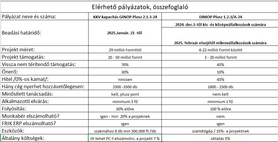 A hazai mikro, kis- és középvállalkozások (KKV) számára 2024 vége és 2025 eleje ígéretes időszak lesz, ugyanis két jelentős pályázati lehetőség is megnyílik: Dimop Plusz 1.2.3/A-24 és Ginop Plusz 2.1.3-24. Ezek a pályázatok a vállalkozások fejlődését, kapacitásbővítését és versenyképességének növelését célozzák. Ebben a cikkben összefoglaljuk a két program főbb jellemzőit és azt, hogy milyen lehetőségeket rejtenek a magyar KKV-k számára.